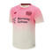 The jersey features a striking colour scheme of purple and cream white. The purple colour flows elegantly from the shoulder to the chest and blends harmoniously with the soft cream white below the chest. The softer shades and floral shadow graphics are a nod to the Japanese Garden in Leverkusen.