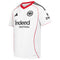 As simple as it is elegant in bright white with black and red elements: Our away jersey for the 25/26 season. A narrow red seam runs along the front to the elegant V-neckline, also in bright red. In black and white, the three characteristic stripes, trademarks of supplier adidas, on the shoulders catch the eye. Also black on the chest on the left are the Eintracht logo, on the right the embroidered adidas Performance logo and, as usual, the logo of the long-standing main sponsor Indeed.