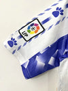 Introducing the Remake of the Retro Real Madrid 1996/97 Away Shirt! Transporting fans back to the glory days of football, this timeless remake pays homage to the iconic design that defined an era. The classic teal blue colorway, adorned with the legendary Real Madrid crest, captures the spirit of the 1996/97 season, a time when footballing legends graced the pitch in style. Meticulously crafted with modern technology for enhanced comfort, this remake allows fans to relive the nostalgia while enjoying contemporary performance. Whether you're a devoted follower or a new admirer of football's golden age, this retro masterpiece is a must-have for any Real Madrid enthusiast. Celebrate history, embrace style, and showcase your passion with the Remake of the Retro Real Madrid 1996/97 Away Shirt.