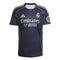 As Real Madrid's world-famous stadium enters a brand-new era, this adidas away football jersey pays tribute to magical nights at the Santiago Bernabéu. Its moiré effect print and silver metallic details combine to mimic the gleaming facade of the renovated arena. Moisture-managing AEROREADY ensures fans feel home comforts when they're on the road with their team.